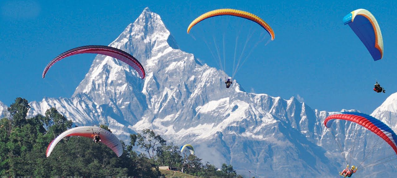 포카라 패러글라이딩은 이번 여행의 절대 하이라이트였어요! 스위스 인터라켄, 터키 페티예와 함께 세계 3대 패러글라이딩 명소로 유명한 포카라에서의 체험은 정말 환상적이었습니다. 해발 1,600m인 포카라 사랑곧(Sarangkot)에서 출발해 히말라야 설산 중 마차푸차레, 안나푸르나, 칸텐중가를 한 눈에 바라보며 패러글라이딩을 타는 경험은 정말 꿈 같았어요!